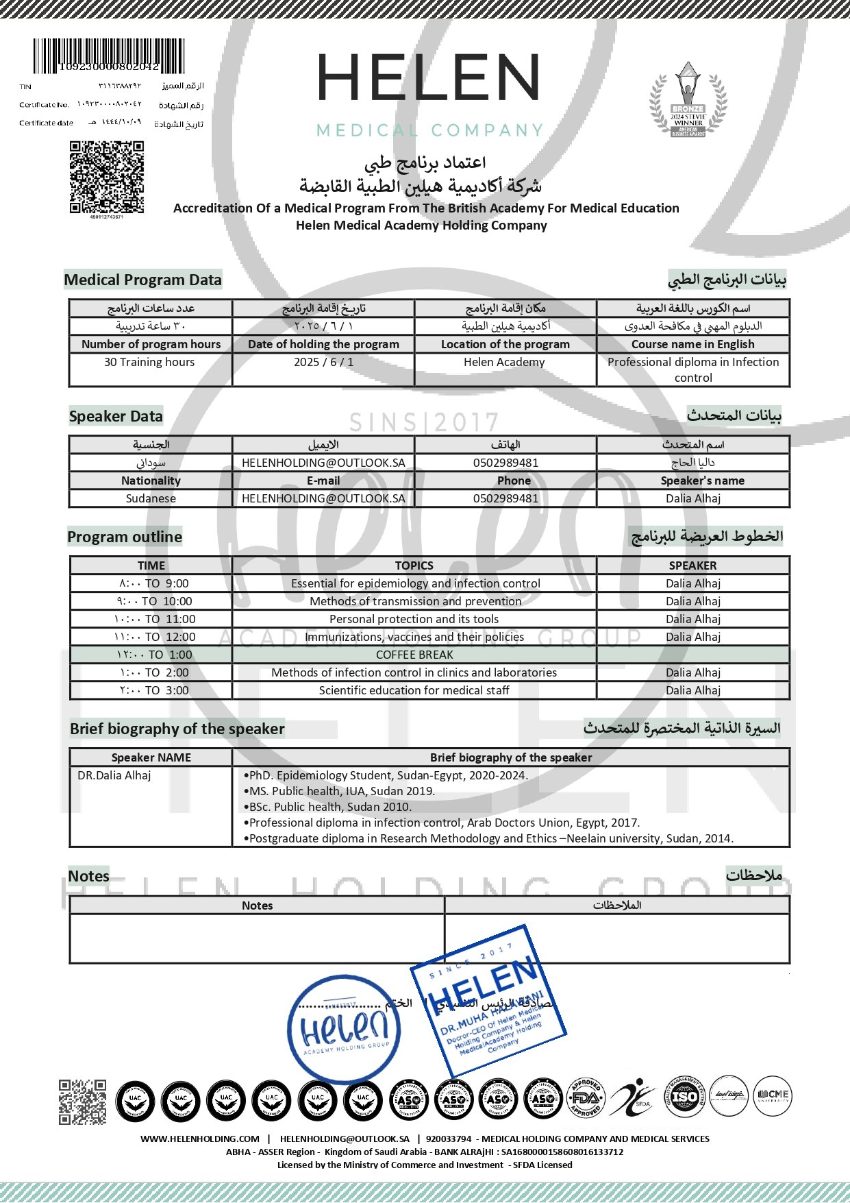1. بعد الانتهاء من البرنامج التدريبي ، سيتم إصدار شهادة إتمام الدبلوم عن طريق منصة أكاديمية هيلين الطبية .